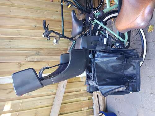 Ik had heel veel foto's van fietsen met stoeltjes en fietstassen online bekeken. En degene die het stoeltje verkocht had ook fietstassen 馃槄