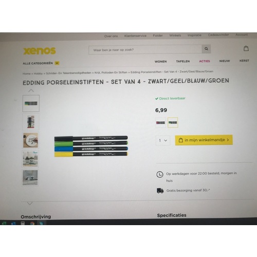 Witte kopjes/schoteltjes en dan een porseleinstift. Hoop dat ze die laatste ...