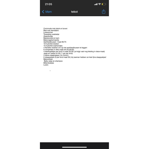 Vanuit je kraamzorg kun je vaak een lijst vinden of krijgen met dingen die zij echt essentieel achten voor de verzorging in de eerste weken.