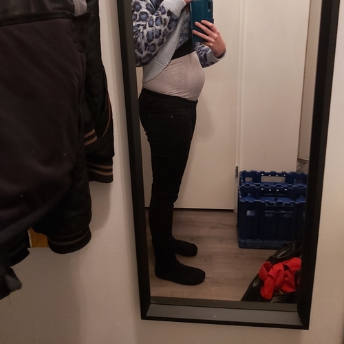 Krijg nog maar 1 spijkerbroek (met veel stretch dicht) dus heb nu veel leggings, stoffe broeken en jurkjes aan