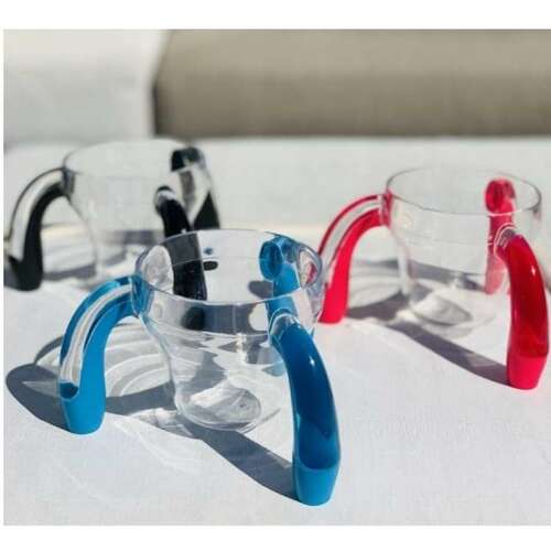 Wij maken gebruik van zo'n "driepoot beker" (geen idee of het zo heet, maar zo noem ik hem maar). Deze heb ik gekregen tijdens de zwangerschap en ik vind het echt een uitvinding. Je kleintje kan hem zelf vasthouden en je kunt zelf met het 3e pootje mee sturen. Zo leren ze uit een gewone beker te drinken, zonder al te veel geknoei. Natuurlijk drupt er nog steeds een gedeelte thee of water langs af, maar dat gaat dag voor dag beter.
