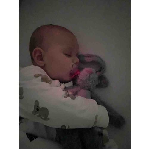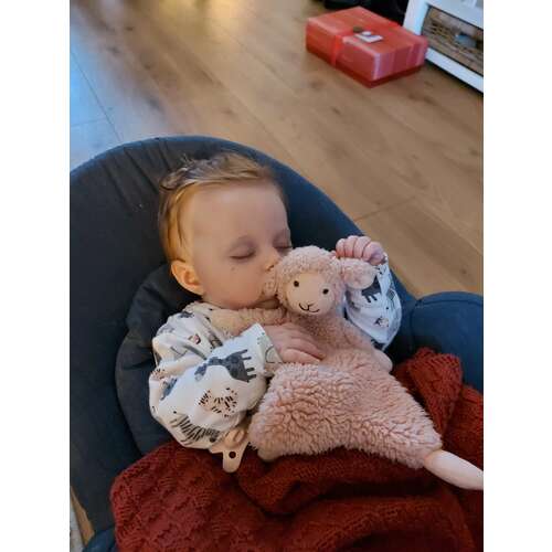 Dat was mijn idee dus ook, maar ze heeft er al 'ruzie' mee voor ze in slaap valt...speen gaat uit en ze eet 'm zowat op tot ze gefrustreerd raakt 🙈 Terwijl ze 'm wel lief vasthoud en niet loslaat tijdens bv omkleden, slaapzak aan etc...