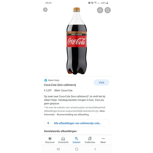 Deze is prima te drinken! Pepti heeft er ook 1, huismerken heb ik nog niet gevonden. Let wel op dat je niet de normale zero hebt, daar zit gewoon caffeine in. Je moet echt die met het label ‘no caffeine hebben’