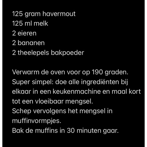 https://www.eatpurelove.nl/recepten/bananenbrood-met-walnoten/ ik maak regelmatig een bananenbrood, evt kan je er ook pure chocolade door heen doen 😁