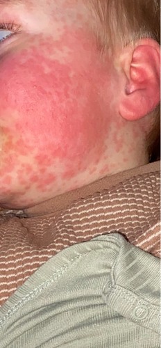 Net bij de huisarts geweest. Ze denken hele heftige reactie op 6e of 5 e ziekte. Hij is gelukkig vanochtend vrolijk en speelt wel gewoon. De vlekjes moeten binnen een week weg trekken. Zijn weerstand is op dit moment echt 0.0. Keel iets rood en zijn rechter oor ook nog een beetje. We moeten het afwachten opdat hij al een antibiotica kuur heeft gehad.