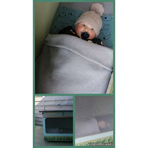 We merken dat ons zoontje veel beter slaapt buiten. We proberen nu minimaal 1 slaapje buiten te doen op de dagen dat we thuis zijn. Op woensdag gaat hij overigens naar de opvang en daar slaapt hij ook buiten, heeeerlijk! En als we van huis zijn, slaapt hij ook altijd wel in de kinderwagen.