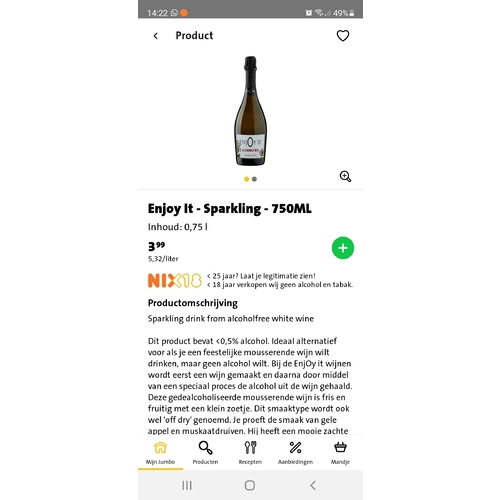 zo bizar, heb 'm nog even opgezocht op de website. Ik heb ooit gegoogled naar alcohol vrije drankjes voor bijzondere momenten. Gelukkig wijn etc totaal niet gemist, een spa rood doet het goed. Op de site van de jumbo staat deze gewoon tussen alcoholvrije wijnen, er staat ook gewoon alcoholvrij op de fles ipv laag alcoholisch. Best wel misleidend dan eigenlijk. Ben er nu toch een beetje van geschrokken.