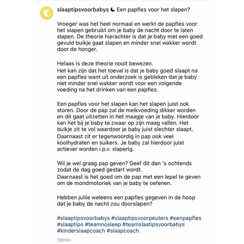 Die van mij slaapt juist 6 uur lang door als ik hem rond etenstijd een paar hapjes rijstepap geef. Het zijn echt maar 10 kleine hapjes waarvan ik eigenlijk de pap weer van z鈥檔 kin veeg en in z鈥檔 mond stop.