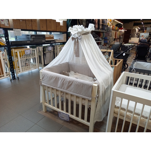 Dat is een ‘kussen’ voor in het ledikantje toch? Zo’n bedbumper. Tegen ons zeiden ze dat het gevaarlijk is. Als we het zelfde bedoelen