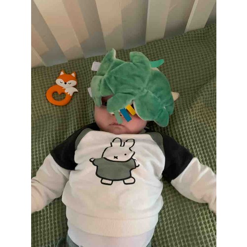 Die van mij slaapt met een knuffel konijn van happy horse, ik denk dus dat een doekje echt wel moet kunnen :) Maar, als je je er niet prettig bij voelt, zou ik het gewoon niet doen, dan lig je zelf alleen maar wakker 🙈