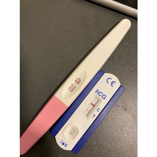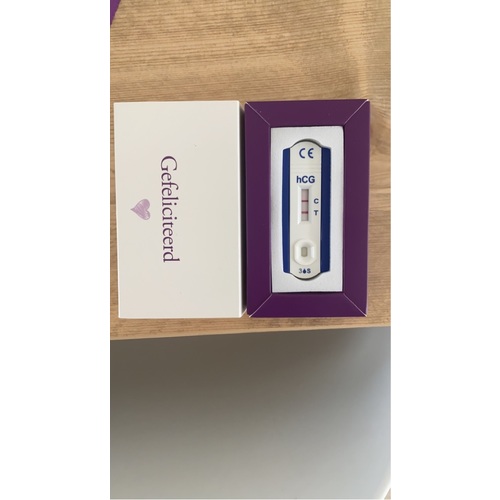 Normaliter doen zij die test bij je om te kijken of je hcg gehalte idd hoog genoeg is om mee te kunnen doen met moeders voor moeders, maar nu vanwege Corona doen ze dat niet en krijg je hem gewoon zelf om te bewaren. Ik vond het ook wel een leuk iets met dat doosje erbij! 😀