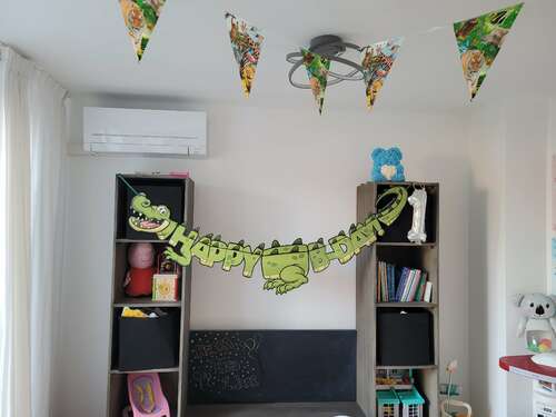 Hier hadden we vorige week een "jungle-feestje". Ons mannetje keek zijn ogen uit en heeft de hele dag zitten wijzen, zwaaien en klappen naar de versiering.馃檲 Ik had jungle vlaggetjes en een krokodillen slinger in zijn speelhoek gehangen. Buiten was het feestje, daar had ik dezelfde vlaggetjes en nog wat ballonnen. En dan nog tafelkleedjes, bakjes, bordjes, servetjes en bekertjes met jungle print erop. Tjah, wellicht heel overdreven aangezien hij het nu waarschijnlijk al vergeten is.. maar deze mama niet馃槉