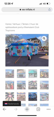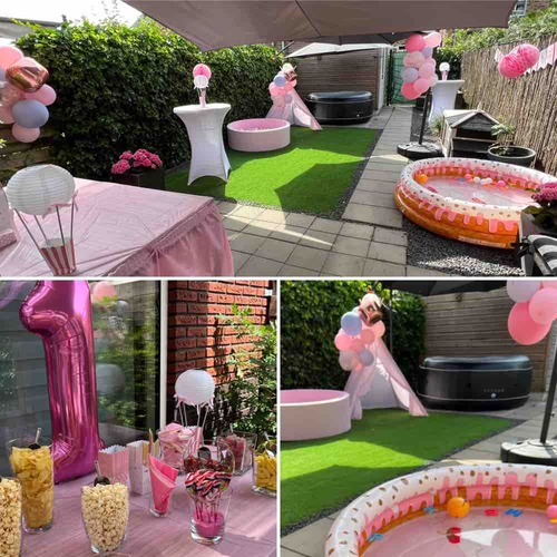 Wij huren deze tent, mijn nicht maakt haar taart, ook de cakesmash taart. We doen een Nijntje thema, ze is 4 augustus jarig dat vieren we thuis gewoon rustig met paar slingers en taartje en 6 augustus doen we het dan met de tent.
