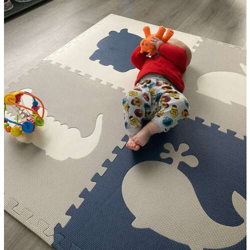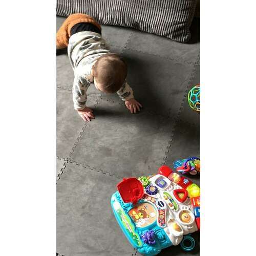 Onze zoon kruipt nog niet, wel beetje tijgeren maar met veel moeite. Zou dat daaraan liggen denk je? Ik vind het niet glad door al die vierkantjes.