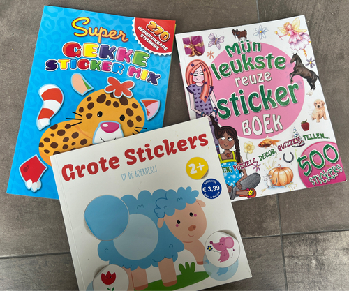 Wat leuk! En herkenbaar. Onze dochter is vorige week 2 geworden en is dol op tekenen, krijten, vingerverven en kleien. Die laatste 2: doe je dat al met je dochter? Een waterkleurboek is hier inderdaad ook een groot succes. Verder zijn stickerboeken een mega succes. Het prikkelt haar fantasie en het is goed voor de fijne motoriek. Samen stickers loshalen en op allerlei logische en minder logische plekken plakken en daar ontstaat dan een heel verhaal bij haha. Zie foto. Ik koop ze voor een paar euro bij de Action, Primera of Intratuin. Daarnaast ook losse stickervellen van de HEMA en dan lege tekenblokken gebruiken om van alles in te plakken en er dan omheen te tekenen. Heel leuk!!