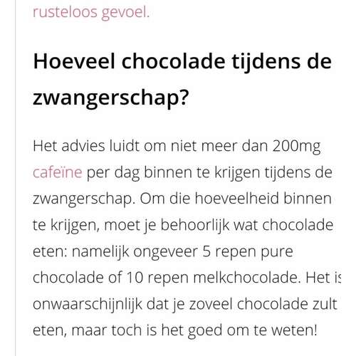 Omdat ze chocolade afraden tijdens de zwangerschap vanwege de cafeïne, ze zien het een beetje als koffie drinken. Dus liefst zo min mogelijk (niet dat ik mij daar aan houd 🙈🙊🍫)