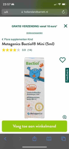 En probiotica van orthiflor! Je kunt dit zelf nemen (als je borstvoeding geeft) of direct aan je baby geven maar dit heb ik nog niet geprobeerd, zou je even moeten lezen hoe en wat.