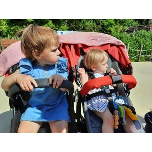 Nu staat die nog als mono dus voor 1 kindje en vanaf moment da broer er is en dochter mee in buggy wilt zitten zetten we hem in duo past door de normale deur openingen en kindjes zitten naast elkaar