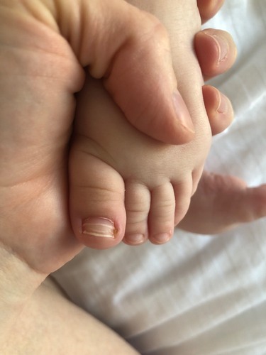 Denk door het kruipen maar ik voelde wel dat het bovenste gedeelde zeg maar als laagje erop zit. Alsof het een nieuwe nagel is die mooi aan het groeien is!