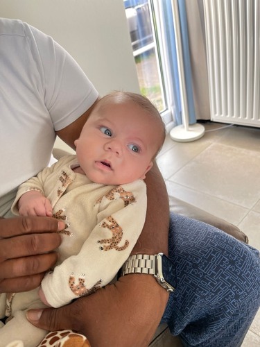 M’n zoontje is kwart Antiliaans (hier bij opa op schoot!) ik vraag me af of z’n ogen nog donkerder worden.. nu 12 weken