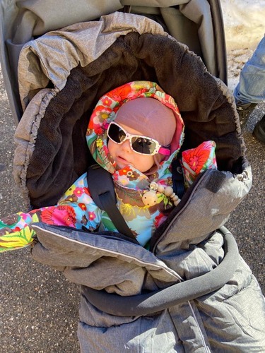 Wij hebben ook de Uppa baby en deze voetenzak: