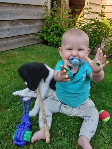 Mijn moeder heeft mij altijd verteld dat het de beste keus was fie ze ooit gemaakt had om de pup met een newborn te hebben, je moet voor je baby al je bed uit. Dus dat kan je dan mooi combineren met je pup. Ze groeien damen op dus zal een hele sterke band worden