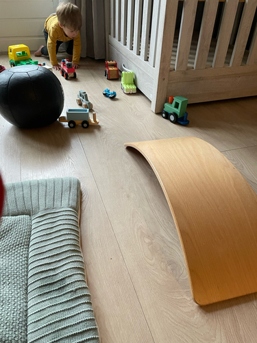 Wij hebben er 1 van de lidl. Wordt nu vooral mee gespeeld als opstapje en overheen klimmen. Dus de wobbel op z'n kop