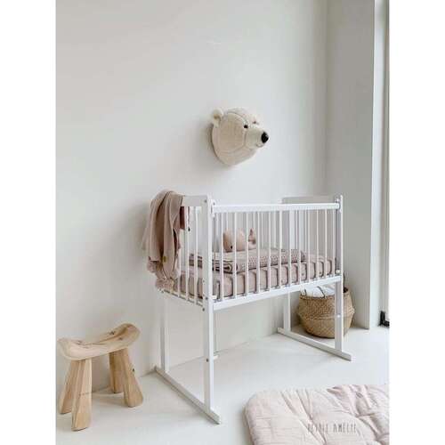 Wij hebben deze co sleeper van Petite Amelie via marktplaats gescoord. Ik wilde het liefst eentje met spijlen, dit geeft mij een fijner gevoel. Ergens heb ik de (waarschijnlijk onterechte, ha ha) angst dat ze in ademnood komt als ze tegen het stof gan de meeste co-sleepers aan rolt in haar slaap 😅 maar goed, nu kan ik dus ook rustig slapen met jaar naast me over 4 maanden 🤣