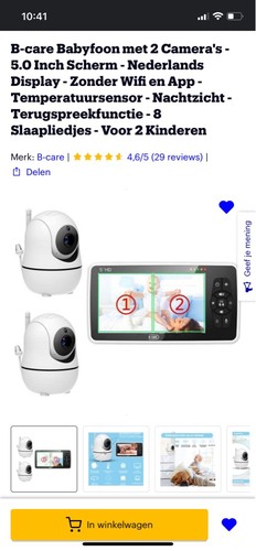 Deze is echt top! Aangeschaft omdat de 2e onderweg is en ik graag 1 beeldscherm wil hebben met allebei de beelden er op. Je kan de camera’s ook op afstand draaien, ideaal! Hiervoor had ik een Luvion Essential, ik ergerde me ook echt aan het geluid. Als je de B-care zacht zet dan heb je ook niet van die schelle geluiden, het is super helder. Er zit een VOX functie op, die niet bij elk mini geluidje reageert. Ik raad deze echt ten zeerste aan!