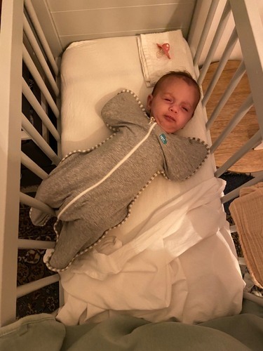 Andere dingen die je veilig kan proberen, is een slaapzak. Nog iets mindere maten misschien dikke sloffen/schoentjes. Of knuffeldoekjes of doeken gebruiken om hem meer tegen te houden. En an sich kan inbakeren nog helpen met de onrust.
