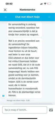 Weet dat dit topic al een jaar oud is maar wil dit toch ergens even kwijt. Wij hadden ook gekozen voor ah/etos vanwege het melkvet en lactose ipv maltodextrine. Nu viel het mij op dat het er wat anders uit zag en zag op de pot dat de ingrediënten ook ineens veranderd zijn. Ik vroeg bij de ah om toelichting en kreeg het antwoord op de foto. Op de vraag over melkvet of maltodextrine kon ze geen antwoord geven. Voor mij klinkt dit ontzettend als een verkooppraatje en vind het bizar dat dit niet even eerlijk vermeld kan worden.