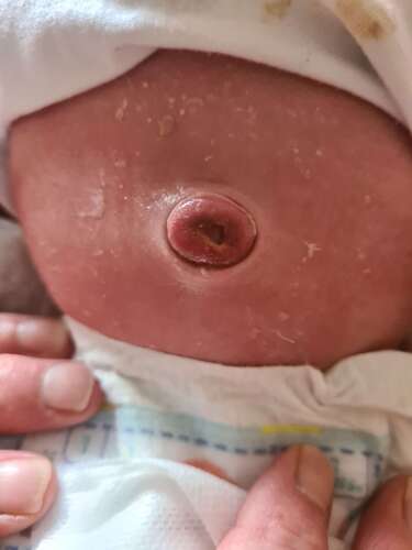 Onze dochter had een ontstoken navel en dat zag er zo uit als op de foto.