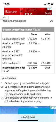 Ik doe zelf trouwens 2 dagen per week betaald ouderschapsverlof opnemen. Ik werk toevallig vier dagen per week 9 uur, dus dan heb ik 18 weken met twee dagen ouderschapsverlof, dus 50% wordt 70% uitbetaald en 50% word ik 100% uitbetaald (dus dan heb ik 85% van mijn salaris ongeveer voor 18 weken).