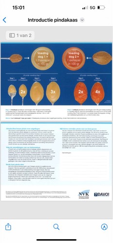 Wij hebben het gedaan zoals op de foto. Gewoon een theelepel calve pindakaas toegevoegd aan 100gr voeding en begonnen met een halve thee lepel. Na een uur een theelepel ect.