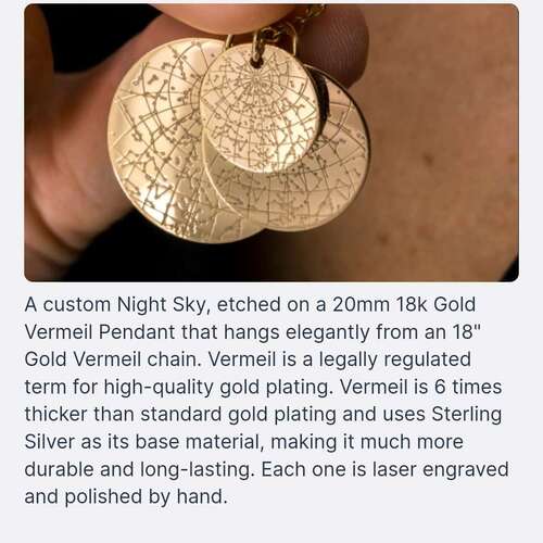 Ik heb gisteren deze besteld, dus nog niet in huis maar zat er al langer naar te kijken en nu hebben ze korting ivm Black Friday. Ik heb een ketting in de grootste maat in zilver besteld met de sterrenhemel tijdens de geboorte van mijn dochter met een persoonlijke tekst op de achterkant en de kleinste maat in zilver met de sterrenhemel van ons trouwen. Kan ook als armband en in zilver, goud en zwart.