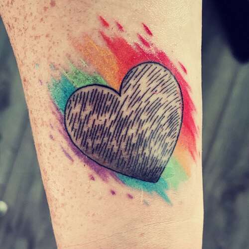 Vingerafdruk van mijn zoontje, vergroot, met daaromheen de regenboogkleuren ivm miskraam ervoor. Mijn mooie regenboogbaby 💙