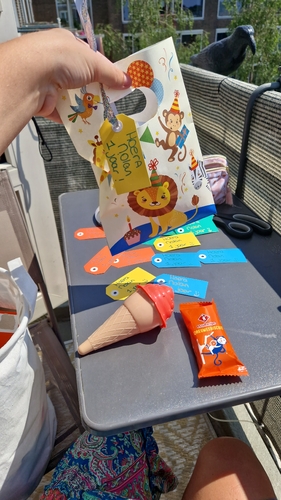 Ik had bij de action eendjes gekocht en een koekje eraan + kaartje ("er is ...