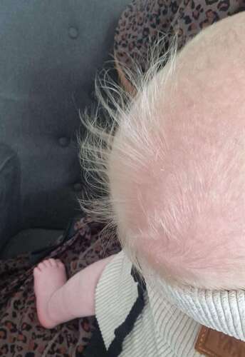 Nu 3,5 week en de haartjes worden steeds lichter (blond) en grijzig, blauwe ogen.
