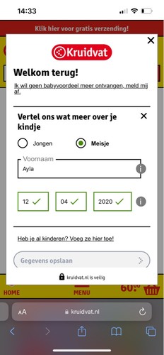 De luiers geef ik weg want de kruidvat luiers gaan wij niet gebruiken. Dus dat maakt dan ook al niet meer uit haha