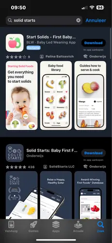 Ik heb de app Solid Starts (gratis). Vind t super handig. Je zoekt het voedingsmiddel op en bij ‘how to serve’ zie je dan hoe je het het beste kan snijden/aanbieden per leeftijd.
