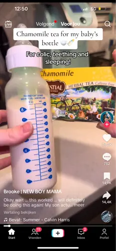 Ik heb de fles van 19:15 gemaakt met kamillethee. Zoontje is daarna in slaa ...