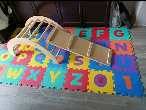Ik had er zoon puzzel foam mat onder van het alfabet. Hopelijk snap je wat ...
