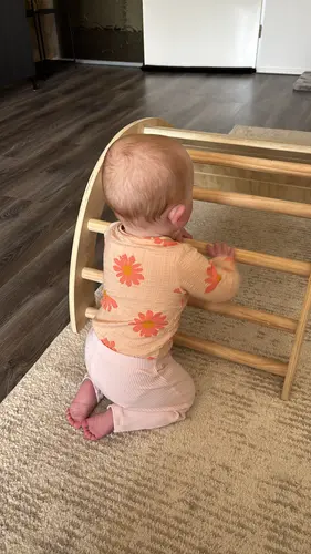 Ik had er zoon puzzel foam mat onder van het alfabet. Hopelijk snap je wat ik bedoel. En uiteindelijk gewoon niks meer toen hij er goed op kon klimmen.