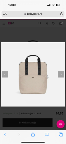 Wij hebben deze. Mn moeder nam m voor me mee vanaf de huishoudbeurs met nog is 7,50 meer korting dan de site gaf. Ben dr helemaal al blij mee. Nog niet in gebruik genomen, maar kleur matcht bij onze Joolz geo 3 wagen. Wilde perse een rugzak en deze kan ook aan de wagen hangen met clipjes