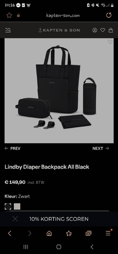 En laat Kapten & Son dan net een gave luiertas hebben, de Lindby. Er was sale en volgens mij zo'n kortingscode voor als je je inschrijft op de nieuwsbrief ofzo, dus de prijs iets minder pijnlijk🫣