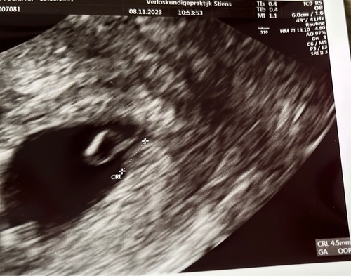 Ik heb zojuist ook de eerste echo gehad. Vruchtje is 5,2mm en ze zeggen dat ...