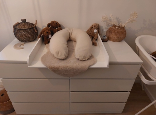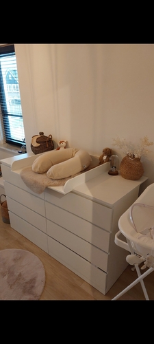 Hi! Wij gebruiken deze ladekasten (2 naaste elkaar) ook als commode. We hadden deze kasten al staan. Wij hebben een bladvergroter besteld via de volgende website: