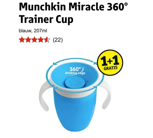 Munchkin Miracle 360! Bij de eerste poging lukte het ons zoontje al meteen om een paar slokjes water te drinken. Andere merken geprobeerd maar daarbij kreeg hij het niet voor elkaar.