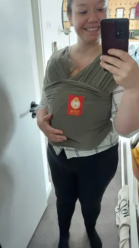 Het is een combi tussen zak en doek. Ik vind hem fijn. En sneller om te doen dan een draagdoek.
