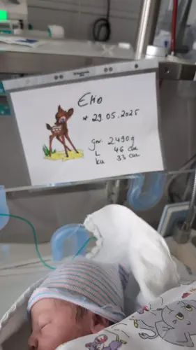 Je vond het wel welletjes geweest en gisterenavond begonnen de weeën met 32+4. Longrijping en weeenremmers toegediend gekregen, maar de bevalling zette door. Doordat je in dwarsligging lag en niet genoeg vruchtwater had om te draaien ben je met een keizersnede geboren. En wat doe je het goed🥰 Inmiddels al van de zuurstof af en hoog geboorte gewicht voor het termijn. Zo trots en dankbaar🩵